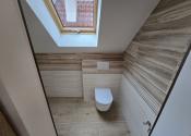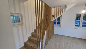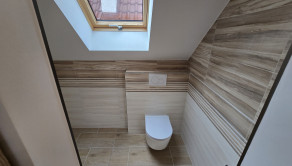 BYT : Celková podlahová plocha bytu je 41,7 m2, pričom 1. NP má plochu 22,1 m2 a 2. NP má plochu 19,6 m2 . 1.NP má vstupnú časť predsieň o výmere 1,4 m2 , obývací priestor spolu s kuchyňou, schodiskom 19,4 m2 a toaleta má 1,3 m2. 2.NP má schodisko a chodbu 1,8 m2, spálňa 14,4 m2, kúpeľňa 3,4 m2.