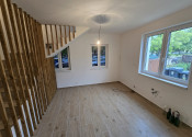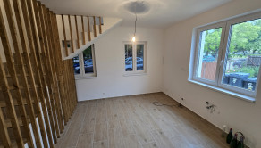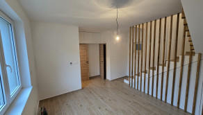 DISPOZÍCIA : Vstupnou chodbou sa dostávate do centrálnej časti bytu , do obývacej izby spojenej s kuchyňou. Na prízemí je tiež umiestnená toaleta. Schodiskom sa dostávate do nočnej časti bytu do spálne. Na tomto podlaží je umiestnená kúpeľňa spolu s toaletou.