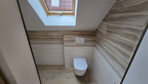 BYT : Celková podlahová plocha bytu je 40,1 m2, pričom 1. NP má plochu 21,3 m2 a 2. NP má plochu 18 m2 . 1.NP má vstupnú časť predsieň o výmere 1,4 m2 , obývací priestor spolu s kuchyňou, schodiskom 18,6 m2 a toaleta má 1,3 m2. 2.NP má schodisko a chodbu 1,8 m2, spálňa 13,6 m2, kúpeľňa 3,4 m2.