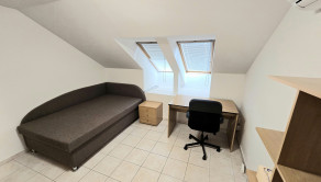 Na poschodí sú štyri spálne, kúpeľňa s vaňou a dvomi umývadlami, samostatným WC a práčovňou. Nachádzaju sa tu dve pračky, jedna je na 15 kg prádla, druhá na 7 kg, jedna sušička.