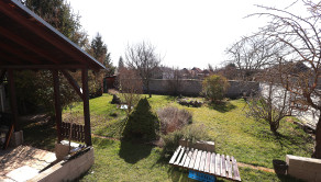 Záhrada je určená na relax, situovaná na juh a je na rovinatom pozemku s terasou a malým jazierkom.