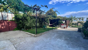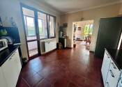 Dom má veľký dvor, zelenú záhradu, zasklenú terasu s grilom, garáž - 22 m2, naradovňa.