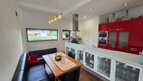 Tento rodinný dom si jednoznačne zamilujete už pri prvej obhliadke. Ponúkame Vám nadštandardný 5 izbový rodinný dom s nádhernou a udržiavanou záhradou. Tento rodinný dom je vhodný aj pre rodinu s 2-3 deťmi. Rodinný dom spĺňa všetky atribúty moderného bývania v nádhernej lokalite. Hľadáme serióznych klientov s rodinou na dlhodobý prenájom. Na terase si užijete súkromie, pohárik vína po práci alebo rannú kávičku. Pri krbe zažijete romantické chvíle s rodinou počas sychravých jesenných dní. Každá miestnosť ma aj východ na terasu priamo spojenú s nádhernou záhradou a záhradnou hojdačkou.