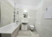 - Vstupná chodba, presvetlená obývacia časť s výstupom na priestrannú loggiu, obývacia časť je spojená s jedálňou a kuchyňou, kúpeľňa s vaňou a WC.