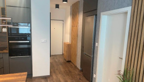 - kuchynská linka so spotrebičmi, indukčnou varnou doskou, digestorom, elektrickou rúrou, chladničkou s mrazničkou.