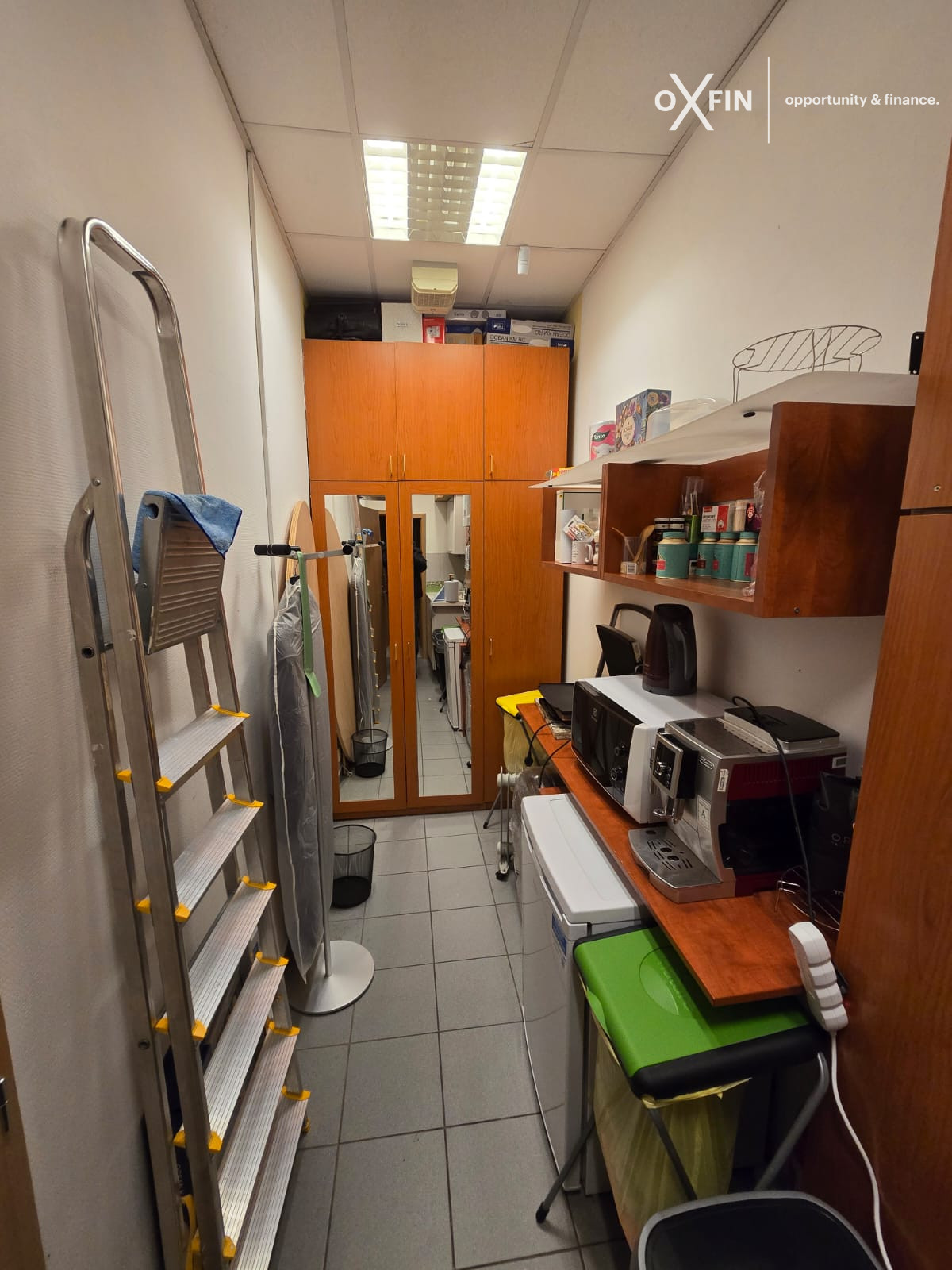 Zariadenie: V kanceláriach ostáva komplet nábytok v obidvoch kanceláriach, bude treba dokúpiť: mikrovlnku, kávovar, kanvicu, chladničku, riady, poháre a ostatné vybavenie kuchyne, terajší nájomca tam chce nechať aj internetové pripojenie s úplne novým optickým káblom s rýchlosťou 1000 Mbps. za sumu 26,- € vrátane DPH. Alarm.