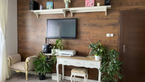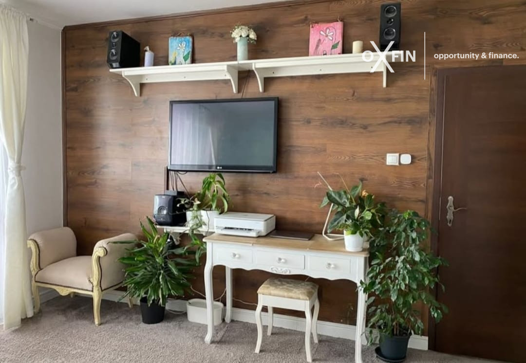 Byt je výborne dispozične riešený, vybavený kompletným zariadením potrebným k bežnému užívaniu tj: práčka, chladnička s mrazničkou, umývačka riadu, el. varná doska, el. rúra, TV, manželská posteľ atď... K dispozícii je aj pivnica na poschodí..