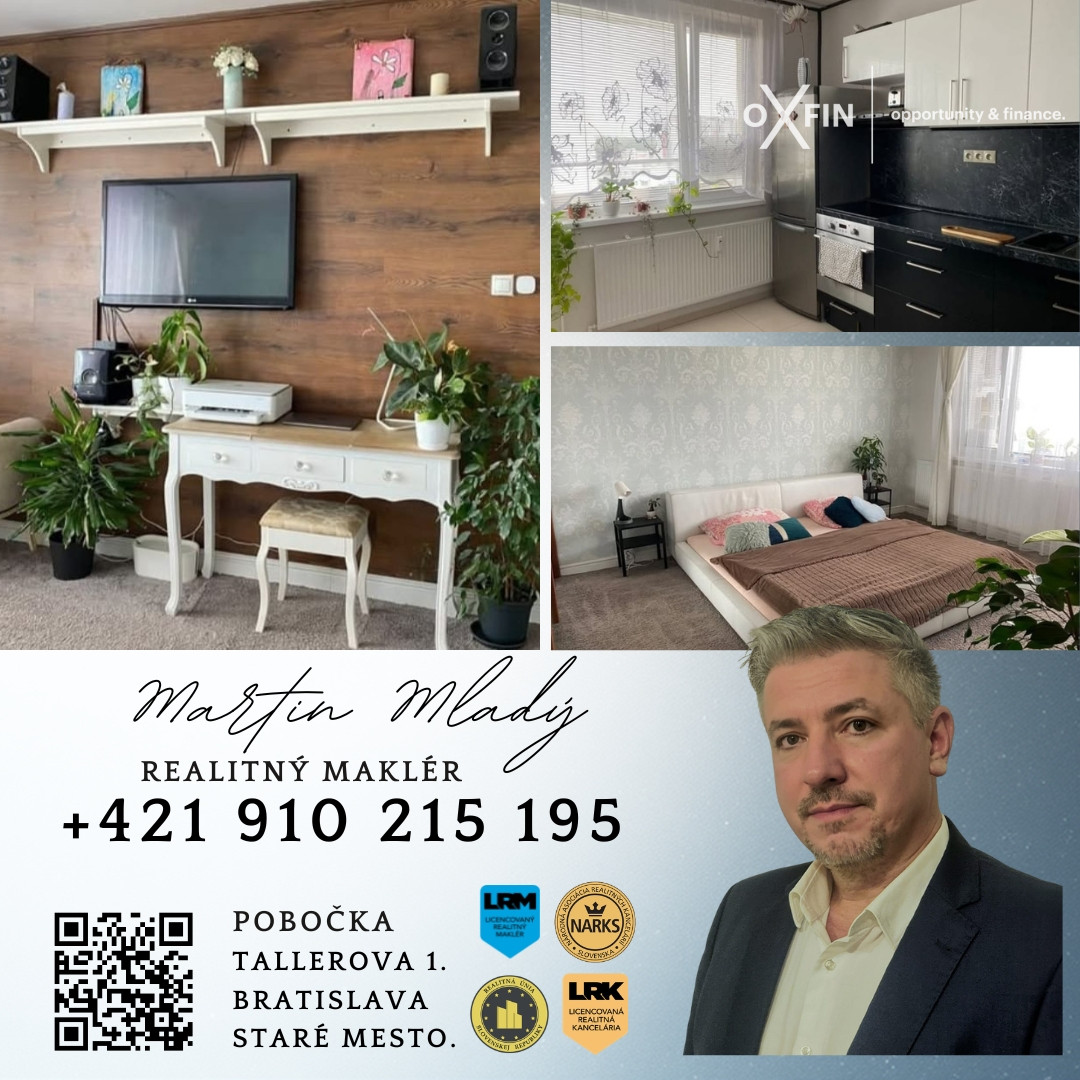 Tento zrekonštruovaný byt je vhodný pre jednotlivca, alebo pár. Lokalita je plne vybavená občianskou infraštruktúrou, v pešej dostupnosti kompletná vybavenosť k spokojnému životu, obchody, výborné napojenie na dopravnú sieť, jednoduché využitie MHD...