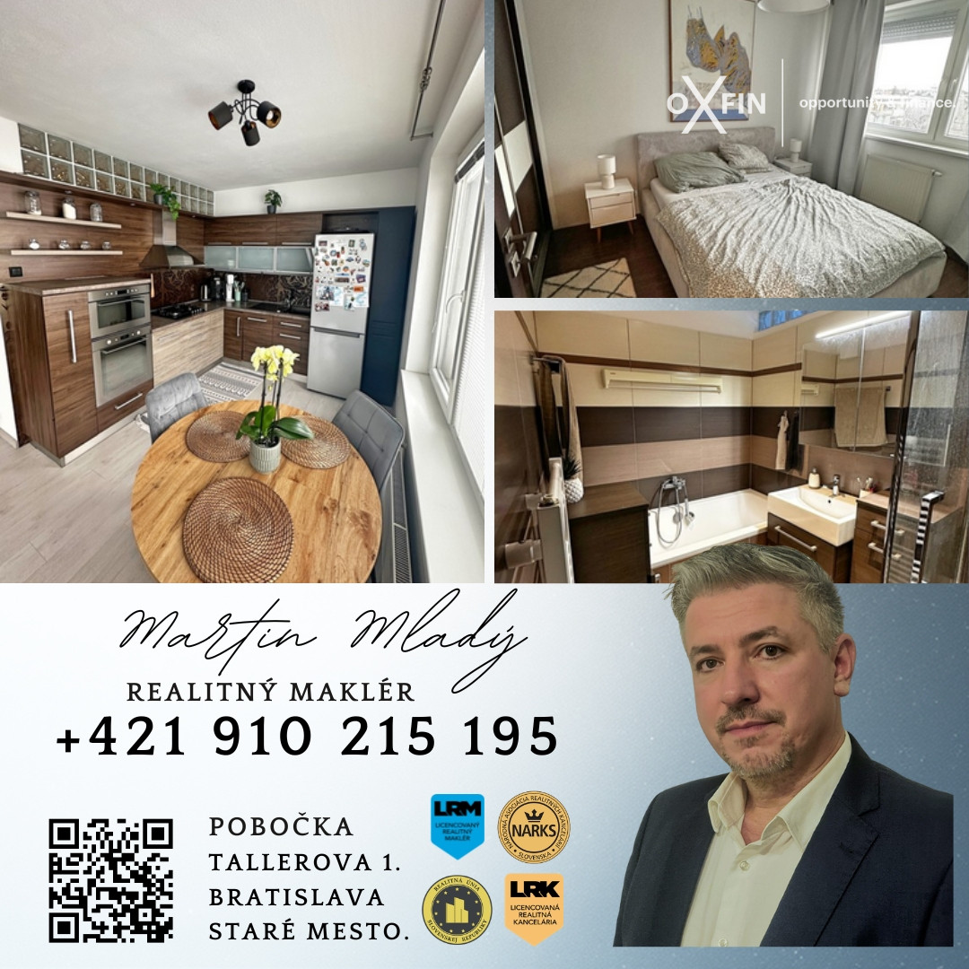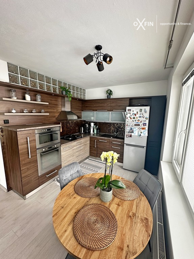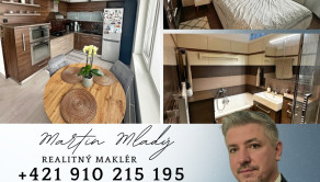 Byt je výborne dispozične riešený, zariadený moderným nábytkom na mieru a kuchyňou s kvalitnými vstavanými spotrebičmi. Byt je vybavený kompletným zariadením potrebným k bežnému užívaniu tj: práčka, sušička, chladnička s mrazničkou, umývačka riadu, el. varná doska, el. rúra, manželská posteľ atď....