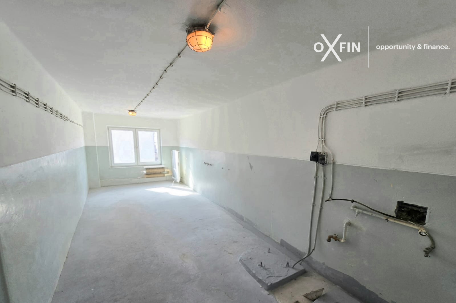 - 2 miestnosť ( priechodná s prvou miestnosťou ) plastové okná, betonová podlaha