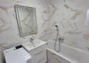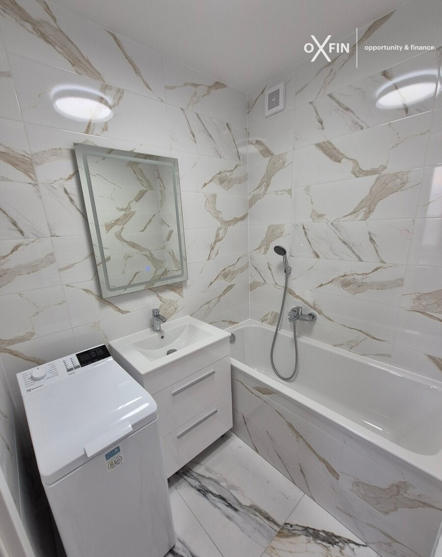 - kúpeľňa s umývadlom, vaňou a práčkou Electrolux
