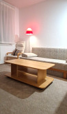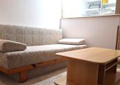 - obývacia miestnosť: rozkladací gauč, kreslo, nábytková stena, TV a konferenčný stôl