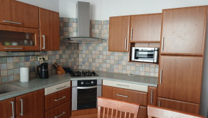 - samostatná kuchyňa s jedálenským stolom, plne vybavená vstavanými spotrebičmi: elektrická rúra, plynová varná doska, mikrovlnka, chladnička. Z kuchyne je piramy vstup na balkón.